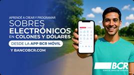 Para crear un Sobre Electrónico, Ahorro Automático o CDP el cliente solo debe ingresar al App BCR Móvil o a la Oficina Virtual por medio del sitio web: www.bancobcr.com.