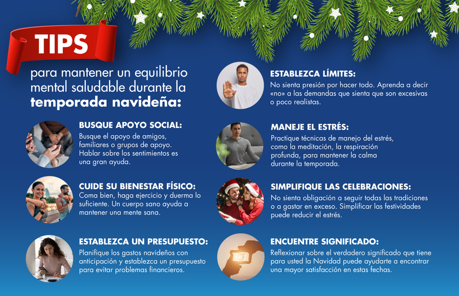 La mezcla de emociones en esta época es un desafío para la salud mental, debido a las expectativas, el estrés de compromisos, la soledad o los problemas financieros presentes o futuros, que se puedan derivar por gastos que incrementen las deudas. Saber enfrentarnos a estos retos de una manera efectiva nos dará mayor entendimiento de que, «lo que realmente importa» es el amor, la conexión con nuestros seres queridos y el cuidado de uno mismo y de los demás, no los condicionamientos sociales.